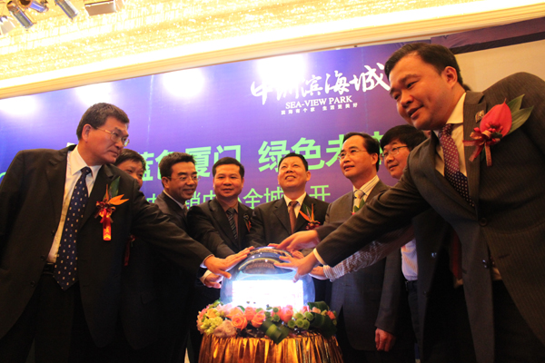 “蓝色厦门,绿色未来。”作为目前厦门市最大规模的房地产开发项目,以及海西首个国家三星级绿色建筑标准住区,金帝·中洲滨海城从诞生之初,就引起了政府高度重视。11月14日上午,位于厦门莲坂新景中心一楼的金帝·中洲滨海城岛内营销中心正式全城公开。在揭幕典礼上,同安区委书记高玉顺、厦门市建设与管理局副局长林树枝、厦门市建设与管理局副局长余江河、同安区常务副区长黄燕添、同安区人大主任李永国、同安新城常务副主任颜志平、同安新城副主任石景等相关部门领导,以及福建金帝集团董事长李德文、金帝集团总裁李雄虎、金帝集团中高层领导,与广大新闻媒体单位共同见证了这一历史时刻。