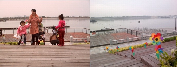 图片说明:参观中洲滨海城的海岸游艇码头,海风吹拂的五彩风车增添情趣