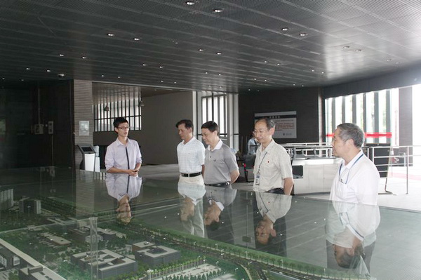 武汉理工大学原校长、博士生导师周祖德教授一行在厦门工学院沙盘前详细了解学院概况