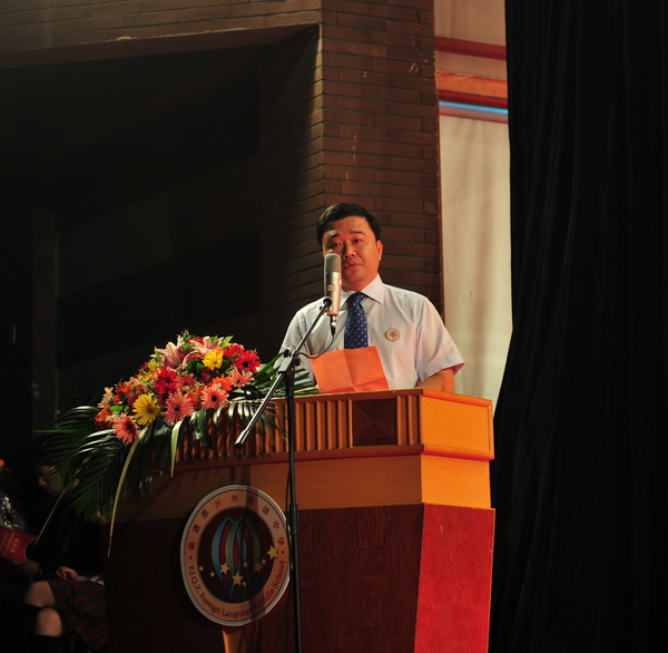 典礼首先由王晓东校长致辞,他回顾了泉外在过去一年里取得的辉煌成绩,向在过去一年里关心、支持学校发展的领导、师生及家长表示由衷感谢。同时提出,希望在新的学年里,老师们能用智慧与精神的甘泉滋润每一个学子的心灵;同学们能用快乐和勤奋去拥抱崭新的明天;希望泉外在大家的共同努力下,发展成为办学水平一流、品牌特色鲜明的为学生家长所向往的学校。”