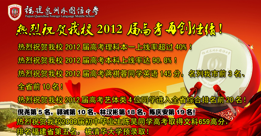 热烈祝贺泉州外国语中学2012届高考再创佳绩!