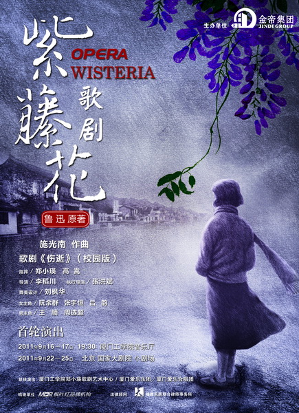 歌剧《紫藤花》(《伤逝》校园版)将于9月16日、17日在厦门工学院首演两场, 9月22日-25日在国家大剧院上演四场,这是继威尔第经典歌剧《茶花女》在厦门成功首演后,厦门工学院郑小瑛歌剧艺术中心登上的又一全新舞台,也是这个成立仅一年多的艺术机构首次登上国家级舞台,更是歌剧《伤逝》暌违30年之后再次登上国家舞台,可谓经典重现。