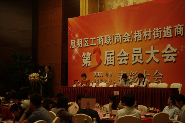 4月27日下午,思明区工商联(商会)梧村街道商会第三届会员大会暨2011年度纳税大户表彰大会在磐基酒店召开。作为福建省房地产业具有代表性的企业,金帝集团受到表彰。