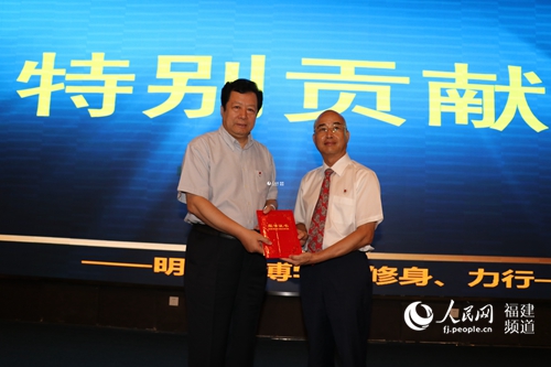 厦门工学院董事长李德文为蒋庄德院士颁发贡献奖